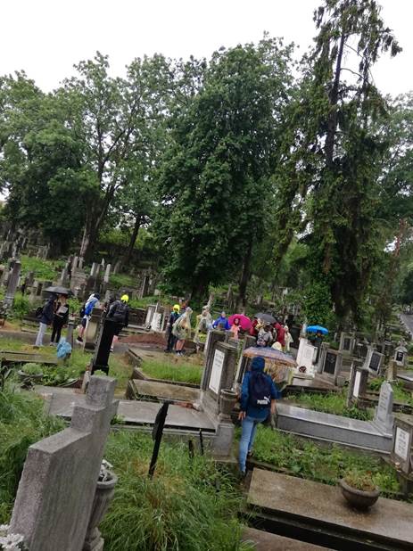 bementünk a házsongárdi temetőbe. Itt sajnos hatalmas eső ért utol minket.