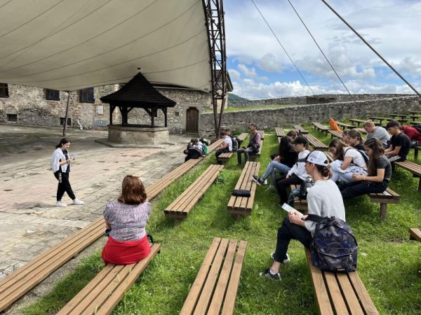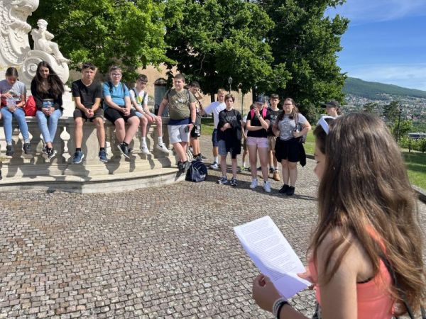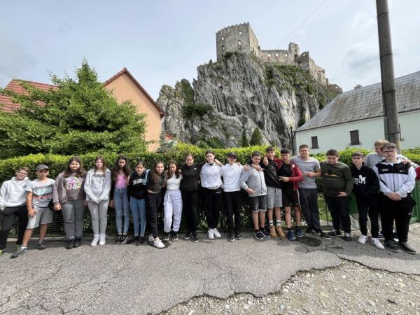 | Eljött az utolsó nap, amikor is Trencsénbe érve megpillantottuk a Vág folyó völgye fölött kimagasló várat. A kiselőadás után felmásztunk a tetejére, ahol igazi ritkaságra hívta fel figyelmünket Pali bácsi. Megmutatta nekünk, hogy néz ki a villámgyorsan repülő sarlós fecske. Lefelé jövet Sanyi bácsi videós jelenetekre invitálta az osztályt, és ezekből megszülettek a vicces videók. Majd a helyi McDonald's étteremben ebédeltünk. | |