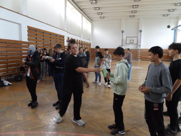 | Innen Felbárra utaztunk. Meglátogattuk iskolánk szlovákiai testvériskoláját, ahol találkozhattunk a helyi tanulókkal és tanárokkal. Rövid kulturális műsort adtunk elő, majd a gyerekek a szlovákiai kollegák segítségével közös ismerkedésbe, játékba kezdtek. Az itt eltöltött néhány óra igencsak tartalmasra sikerült, sőt, még barátságok is szövődtek a két intézmény tanulói között. | ![]() |