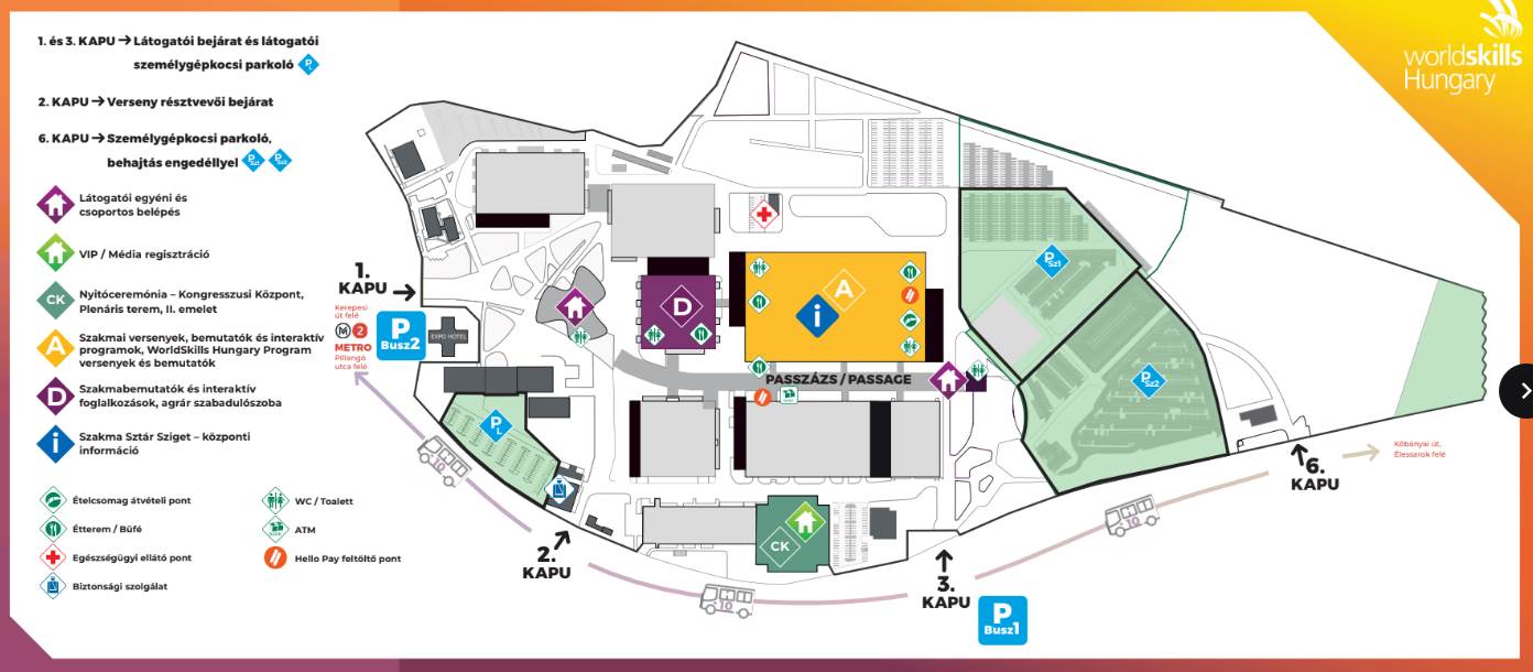 · A pavilon (Szakma Sztár Sziget, szakmai versenyek és interaktív programok, bemutatkoznak a nemzetközi versenyek, a WorldSkills Hungary Program, JuniorSkills asztalos verseny, kiállítók, szakmai támogatók és társszervezetek bemutatkozása, programjai)