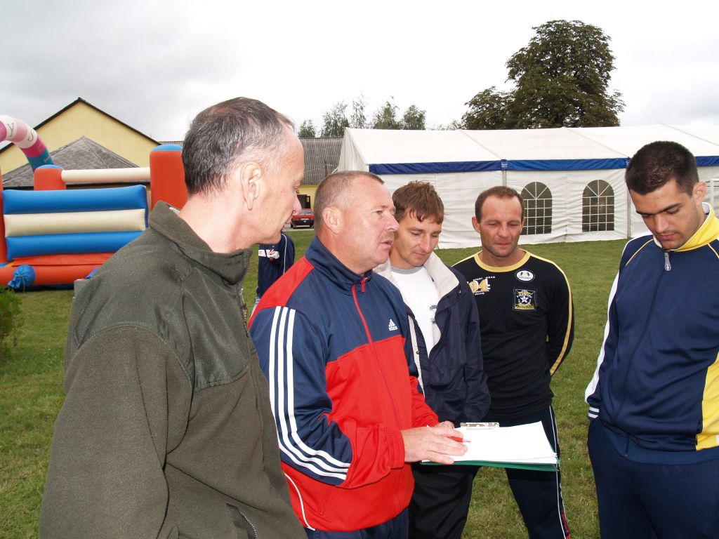 A csapatok edzõi és a játékvezetõ
