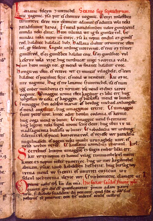 Első magyar nyelven írott szövegemlékünk a Halotti beszéd és könyörgés (rövidítve: HB.) 1200 körül keletkezett.